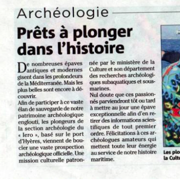 Prospection : Cette année en raison de la covid deux semaines ont été réalisée et une troisième aura lieu du 25 au 29 octobre. (Rappel : c’est ouvert aux Niveaux III/PA40 en exploration). Participation de 2 membres du club à des chantiers archéologiques organisés par le DRASSM sous la direction de Luc Long.